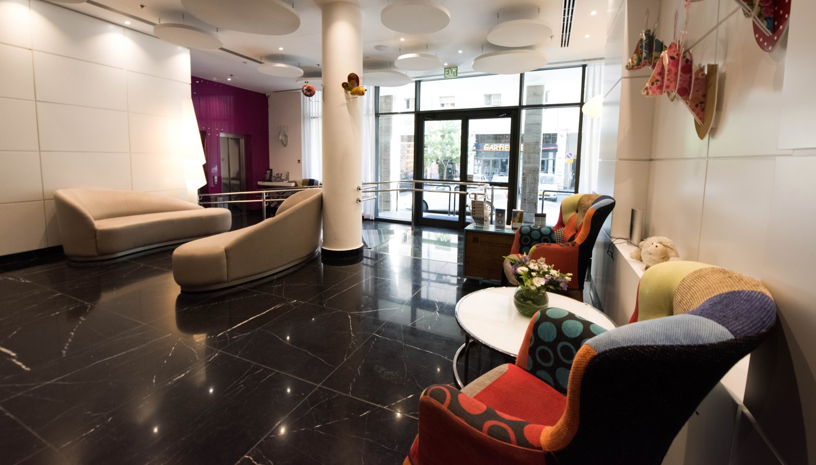 Yoel Lazar (the accidental button-presser) brought in a Tel Aviv designer to fashion 14 duplex suites with full kitchen, salon and dining area – with picture windows and a telescope – and bedroom/s and Jacuzzis on the upper floor. Today, nobody can push the 21 button by mistake; hotel guests receive a code to activate that button in the elevator. This is one of the few boutique hotels in the city center with onsite parking.