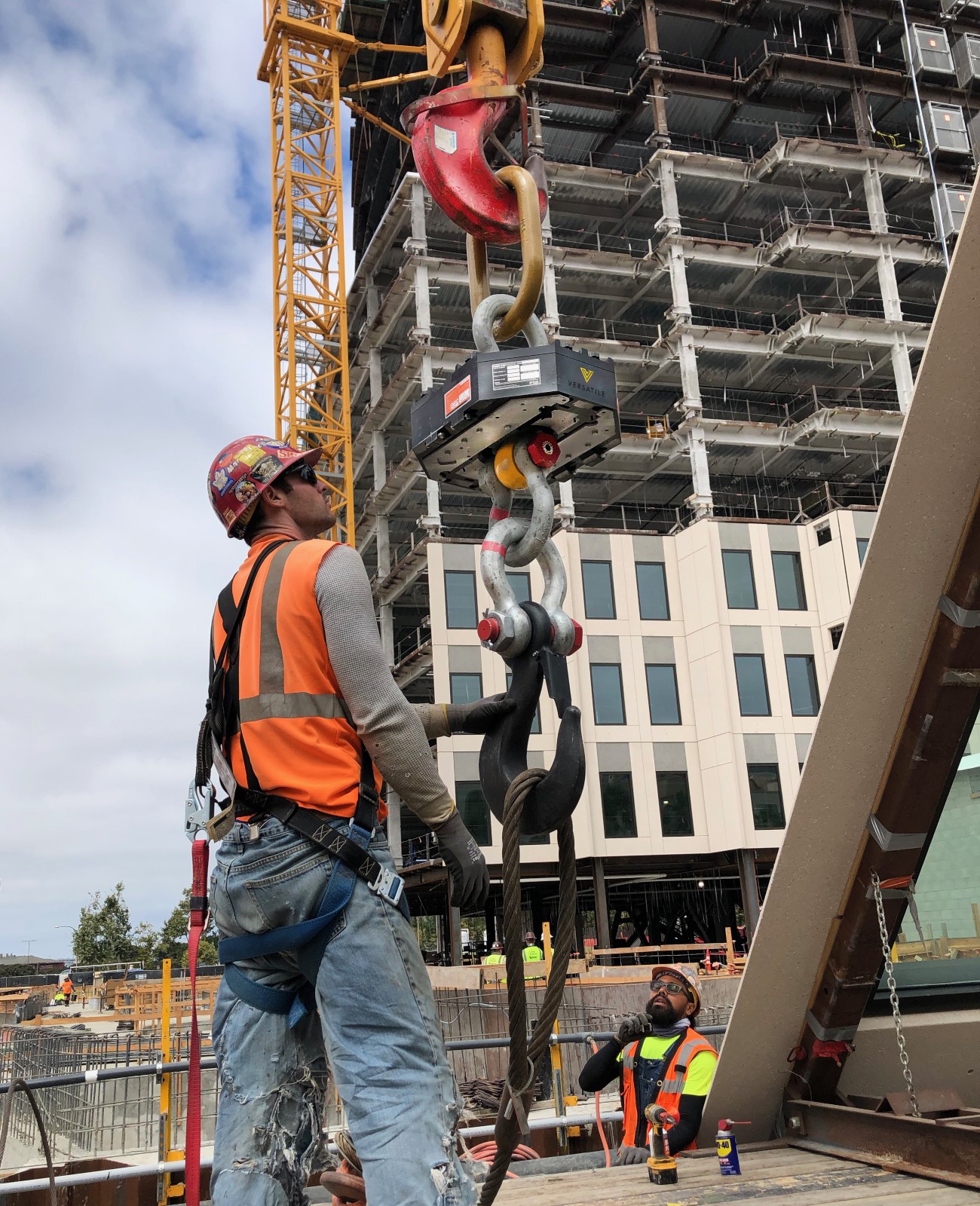 Hooked onto the crane, CraneView measures thousands of data points — load, weight, motion, rigging, unrigging, material, location, tasks and idle times — and displays them instantly on a mobile app to enable smart project-management decisions onsite or remotely.