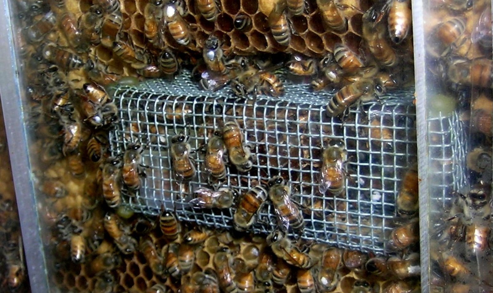 Hebrew University researchers performed a set of large scale experiments with more than 1,000 honeybees in cages and observation hives. Photo by Muki Nagari