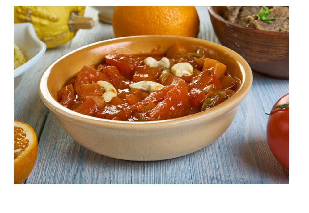 Matbucha (which in Arabic literally means “cooked”) is made of tomatoes, roasted red peppers and garlic. It immigrated to Israel together with Jews from northern Africa – Morocco, Tunisia, Algeria and Libya. Each community has a different name for the salad and slightly different preparation, but the result is always fabulous – a rich and fragrant salad or dip that can be slathered on bread, added to stews or enjoyed as is, with a big spoon.