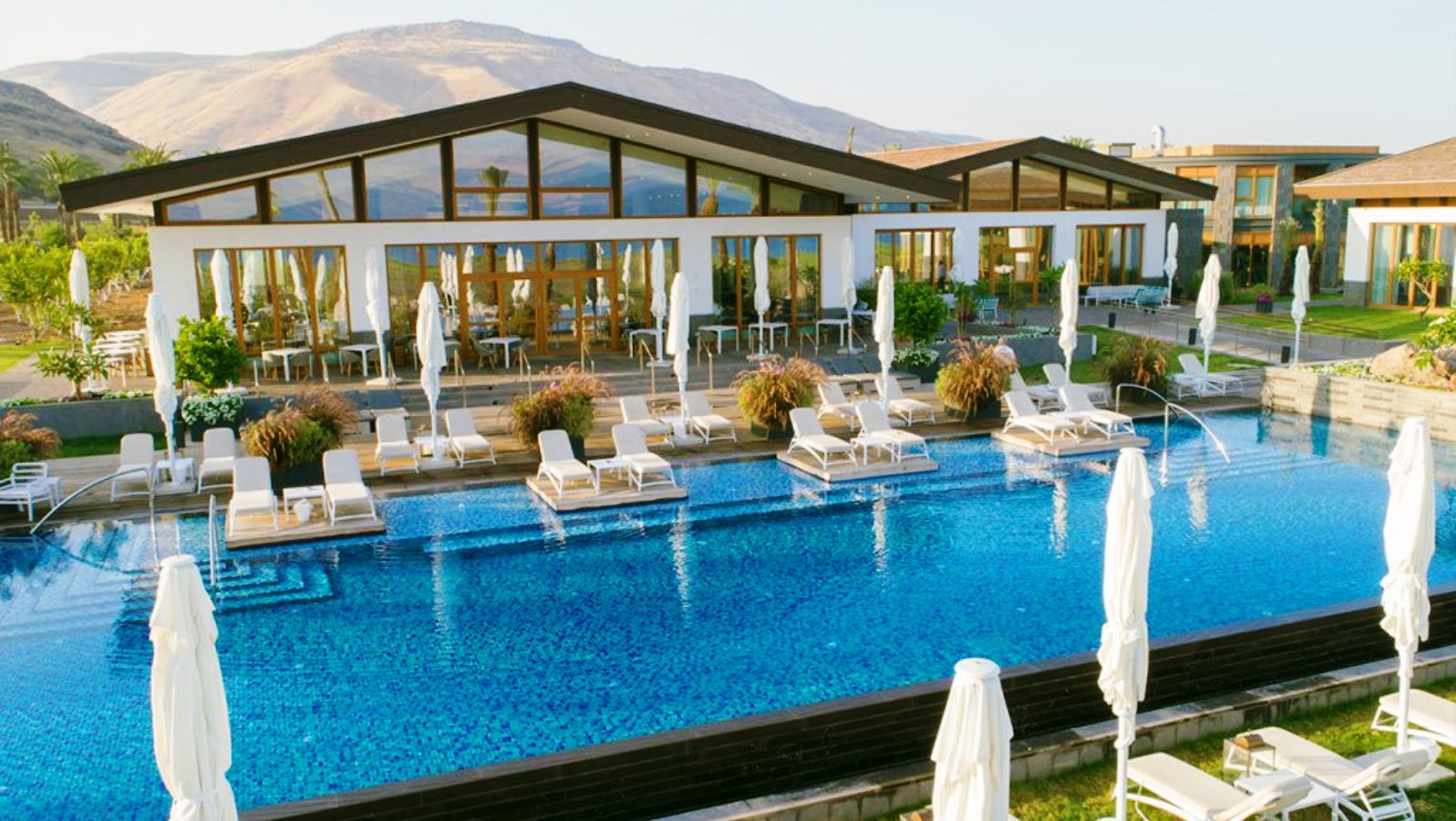 The Setai Sea of Galilee, which claims to have the largest spa complex in Israel, opened in mid-2017. Situated on the eastern shore of the Sea of Galilee (Lake Kinneret), the pastoral hotel includes 110 rooms and villas. Ground-floor villas have private infinity pools while second-floor villas have outdoor hot tubs. Guest-room balconies afford views of the Golan Heights to the northeast and the city of Tiberias across the sea.