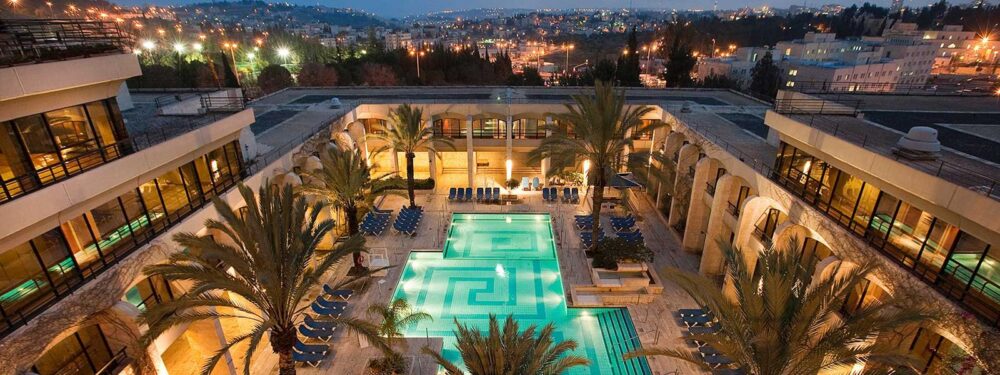 Formerly known as the Jerusalem Hilton and then the Crowne Plaza Jerusalem, this 21-story iconic hotel sits conveniently next to the Jerusalem Convention Center; light rail, train and bus stations; and very near Machane Yehuda market, the Supreme Court, the Knesset and other attractions.