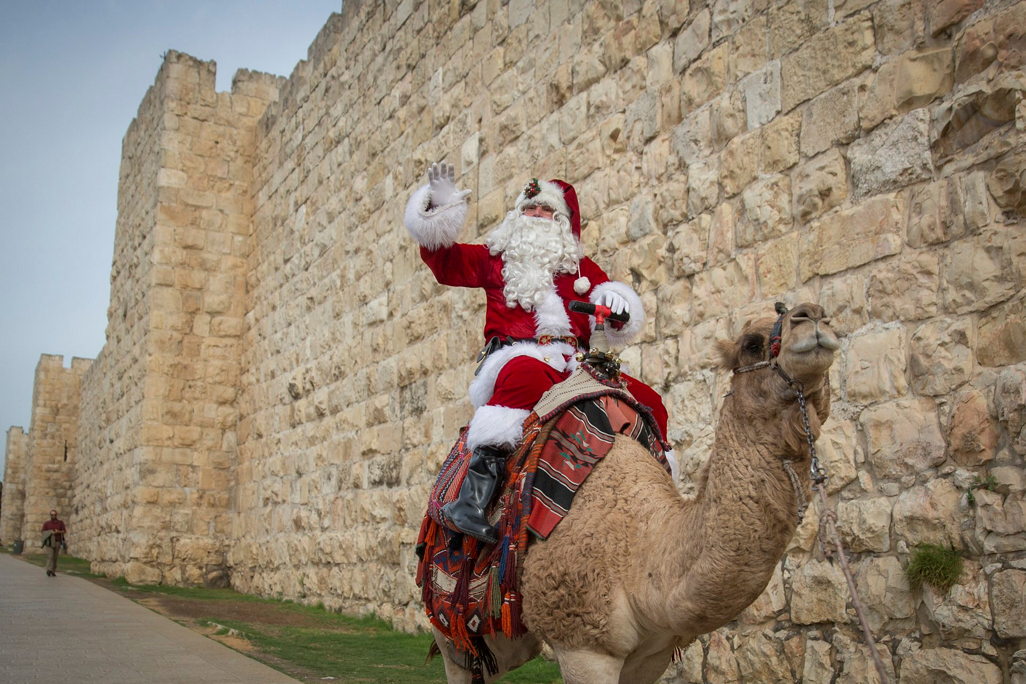In Jerusalem, Santa rides a camel not a reindeer