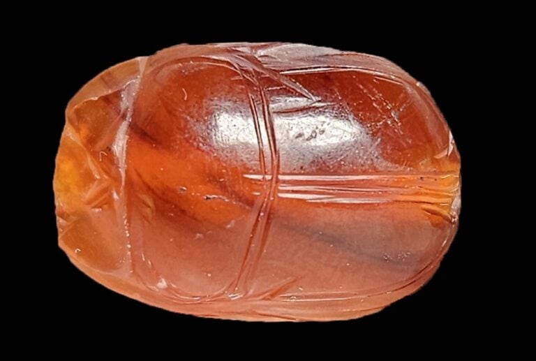 Avrahamov, 45, found the scarab, a small orange stone roughly the size of a thumbnail, during a recreational hike in the Lower Galilee.