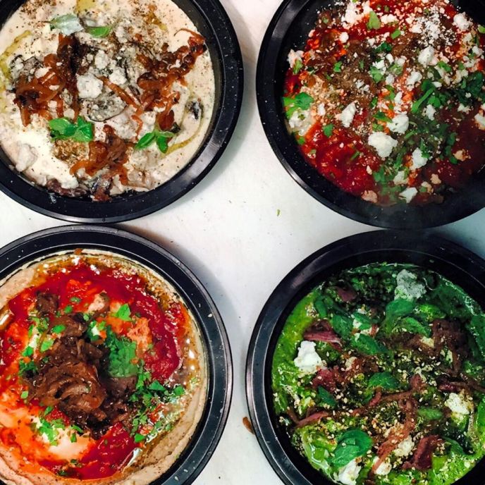 In addition to traditional red shakshuka, the Shuka Truck offers green shakshuka (made with spinach, asparagus, pickled onion, zucchini and goat cheese with honey); white shakshuka (charred eggplant, mushrooms, onion, blue cheese, cumin and za’atar); and humshuka (hummus, garlic, paprika, roasted pepper and chopped cilantro).