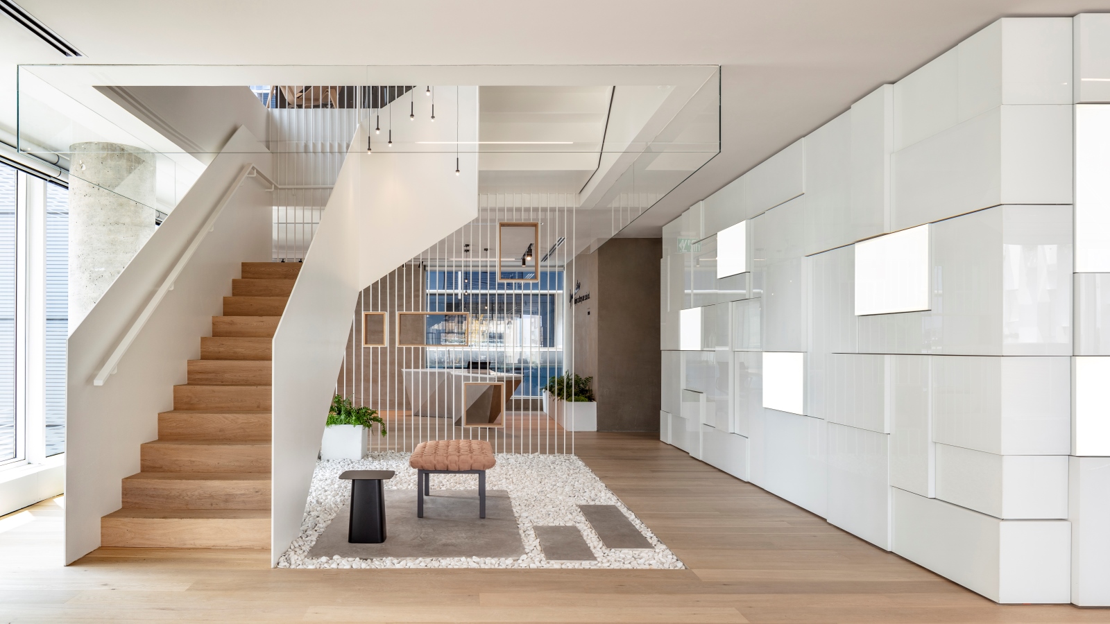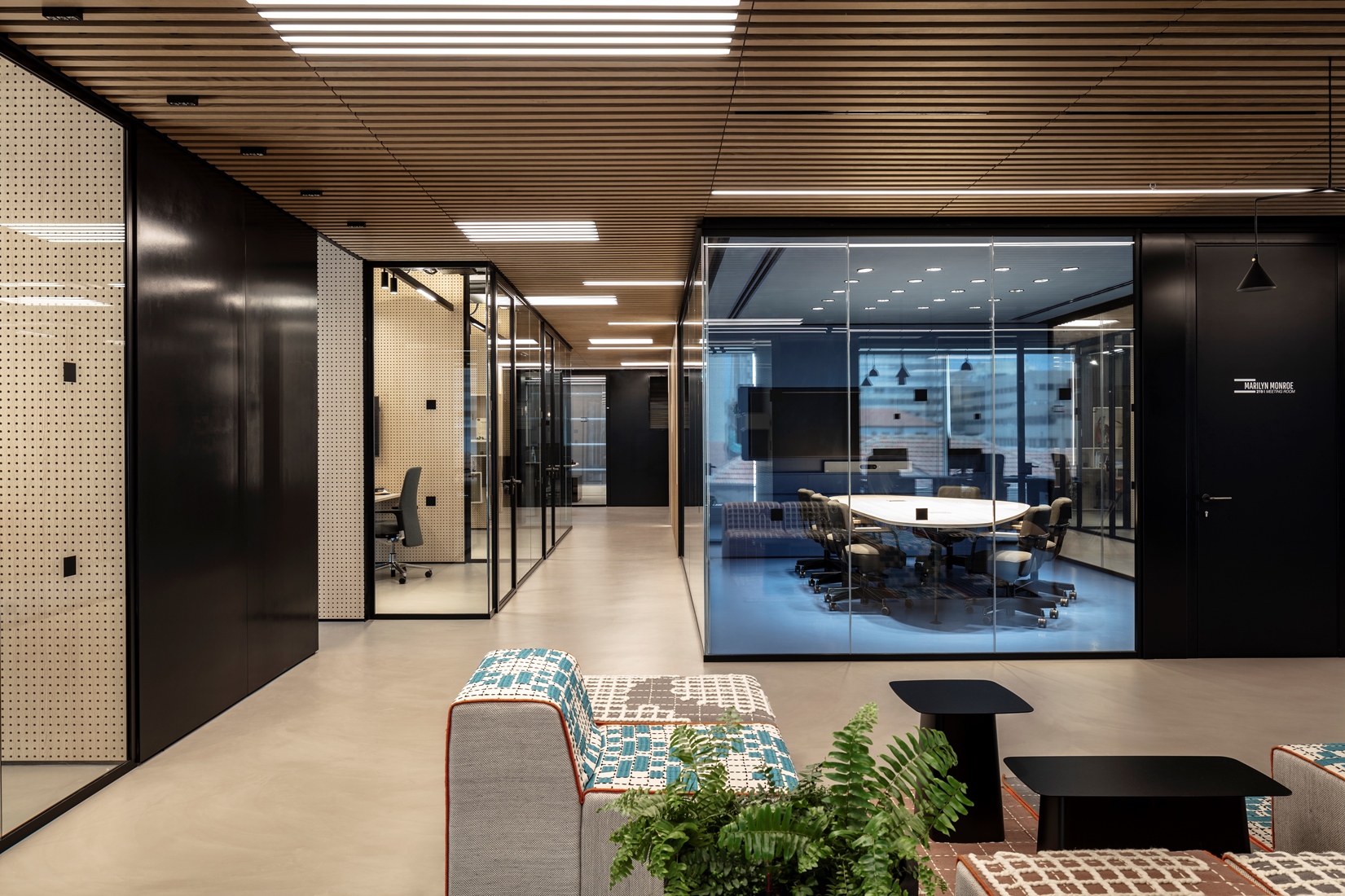 A glass pixel wall of screens installed on the fourth floor provides real-time information about the Israeli innovation ecosystem, and display personalized programs for site-specific meetings and engagements.