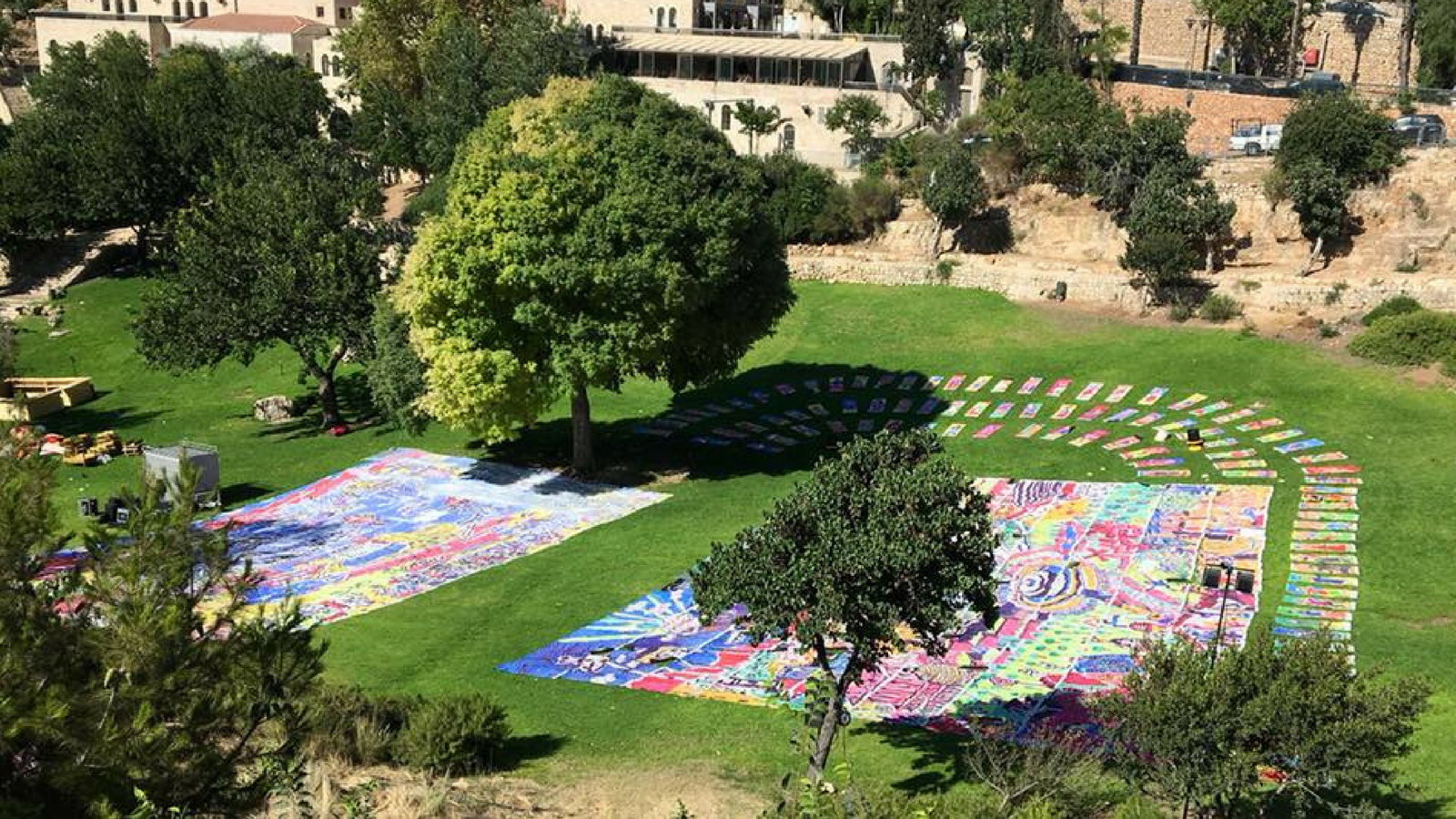 701 colorful yoga mats were laid out on the grass against the backdrop of the Old City walls, forming one big art piece called “The Big Dream – Jerusalem 2048”. The mats were quite literally “dreamed up” by Jerusalem residents who were asked to imagine the view outside their window in 30 years.