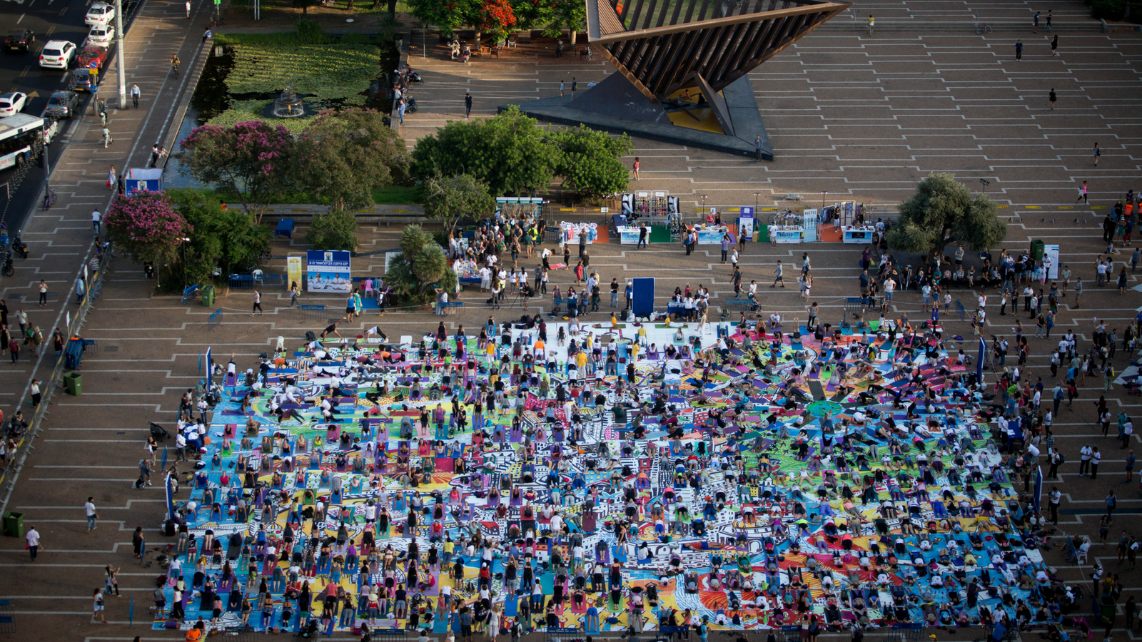 Last year, The Big Dream project took over Tel Aviv’s Rabin Square, where a giant art installation pieced together from 1,500 yoga mats showcased three artists’ visions of Israel’s future.