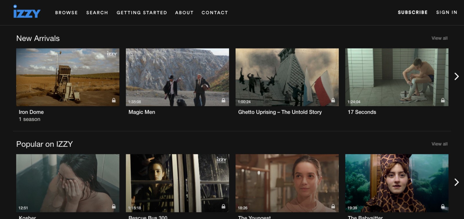 Subscribers anywhere (except in Israel) can access unlimited IZZY programming on-demand via any Internet-connected device or download and watch programs offline. Subscriptions start at $5.99 per month or $59.99 per year.