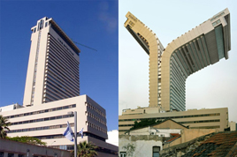 Photos by Victor Enrich published by permission. Unmanipulated Shalom Tower image (on left) courtesy of Wikipedia.