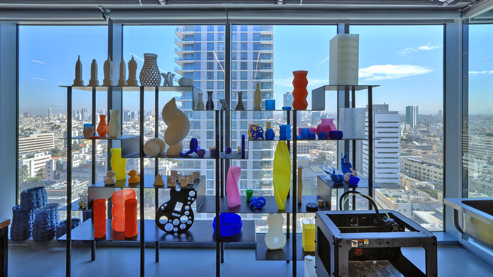 Autodesk makes 3D software for the engineering and construction industries. So it’s only fitting that Autodesk’s 140 Tel Aviv employees designed and printed many of the elements in their four-level development center in Rothschild Tower — including wall coverings, ceiling tiles, lampshades, statues, flowerpots and decorative shelving.