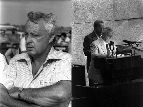 The IDF Archive has no photos of Sharon who was Minister of Defense during the 1982 Lebanon War as he had already left the military. His political career is well-documented in the State of Israel National Photo Collection where some early images include one from 1978 while serving as Minister of Agriculture and one from 1981 of Sharon reading his declaration of allegiance to the Begin government while being sworn in as Minister of Defense.