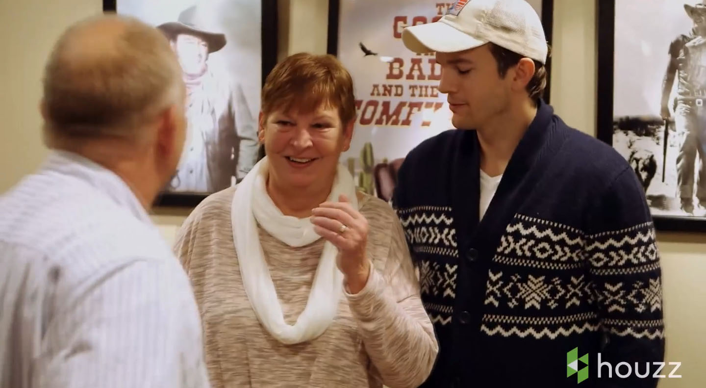 Kutcher, with the help of Portwood, created an ideabook on Houzz, found a local interior designer in Iowa to implement the ideas, and bought nearly all the new furnisher through the Houzz shop. A camera crew followed them from the planning stages through construction.