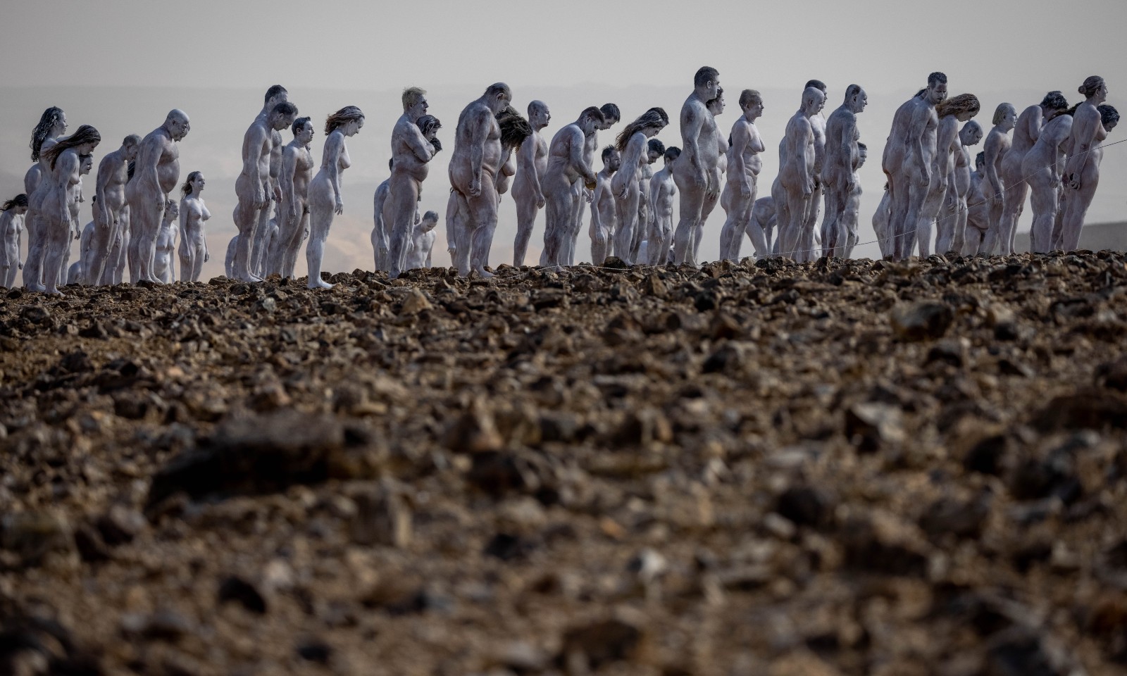 This was the third such photo session by American art photographer Spencer Tunick. A decade ago, he gathered some 1,100 people for an in-the-buff shoot at a Dead Sea beach that no longer exists.