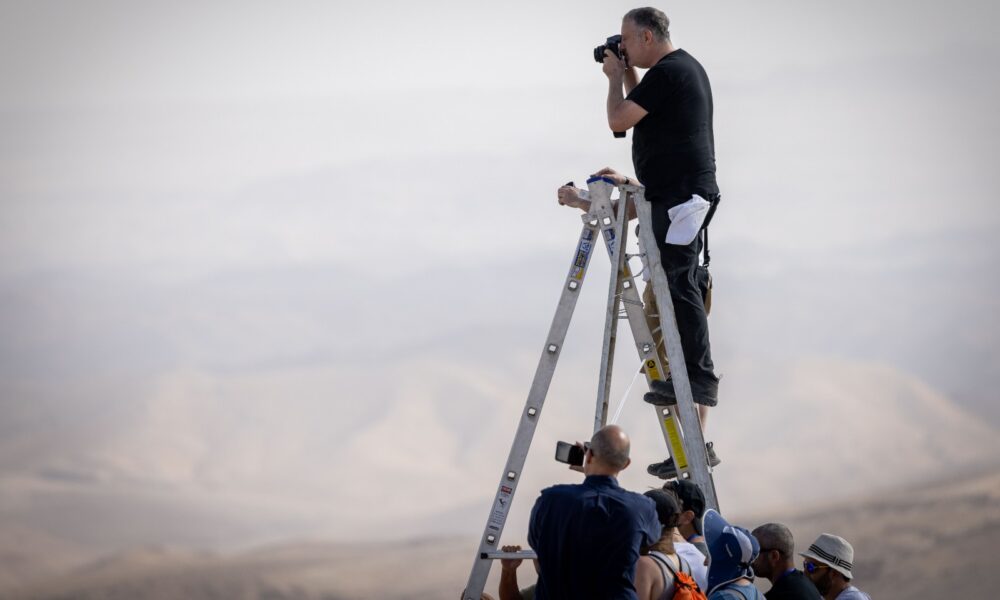Tunick said his works at the Dead Sea “attempt to poetically visually create pushback against the loss of a natural wonder of the world” and that the volunteers who stood barefoot on the rocky soil for the project help publicize the environmental challenges that must be overcome.