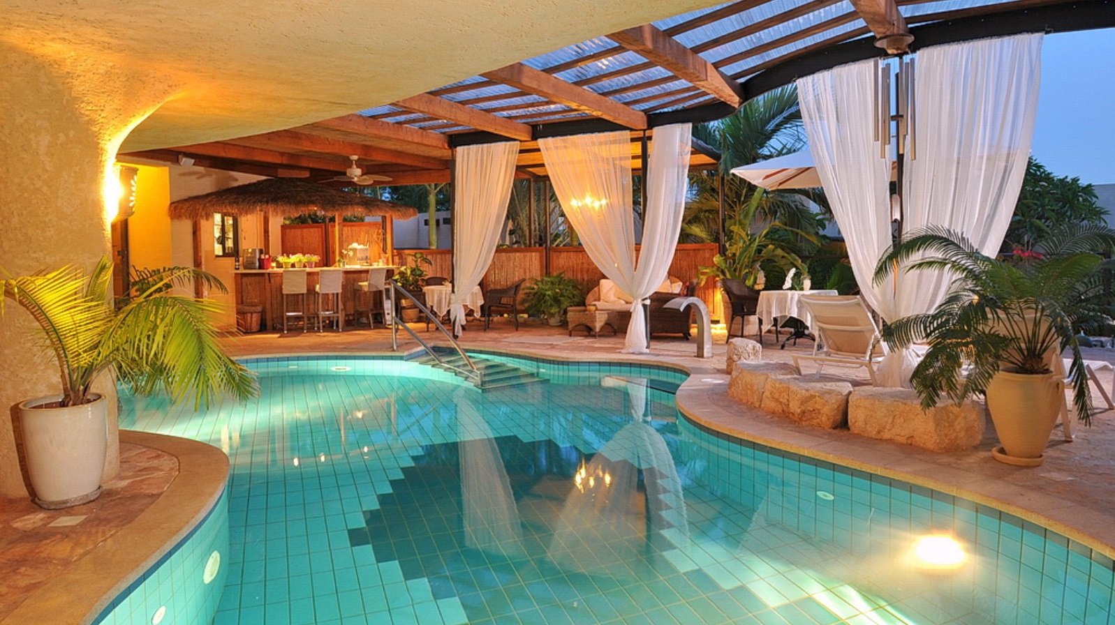 Guests without a personal pool can use the large outdoor swimming pool positioned at the crater’s edge, voted “Coolest Pool in the World” by Travel Agent Central magazine in 2018. No cars are allowed in most parts of the resort beyond the parking lot; guests are transported in electric golf carts.
