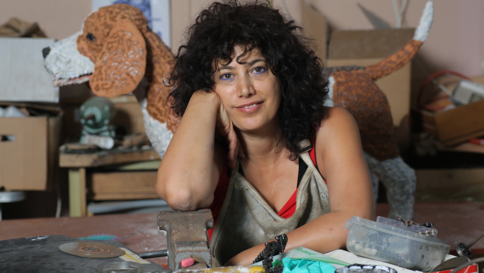 For a sculptor working with recycled raw materials such as chains, rails, keys, light bulbs and mattress frames and coils, there could not be a better gallery location than on a street next to the world-famous Jaffa Flea Market (Shuk HaPishpishim).
