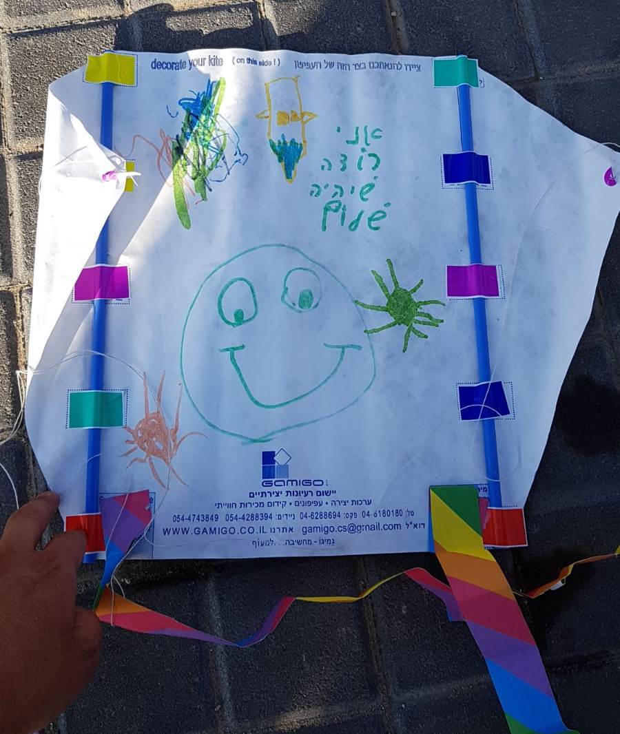 Each child received materials from the Israeli company Gamigo to make his or her own kite. At the end of the workshop the kids flew their kites in the sky.