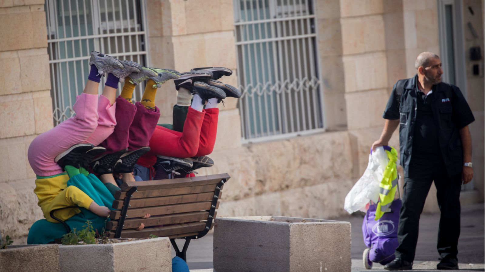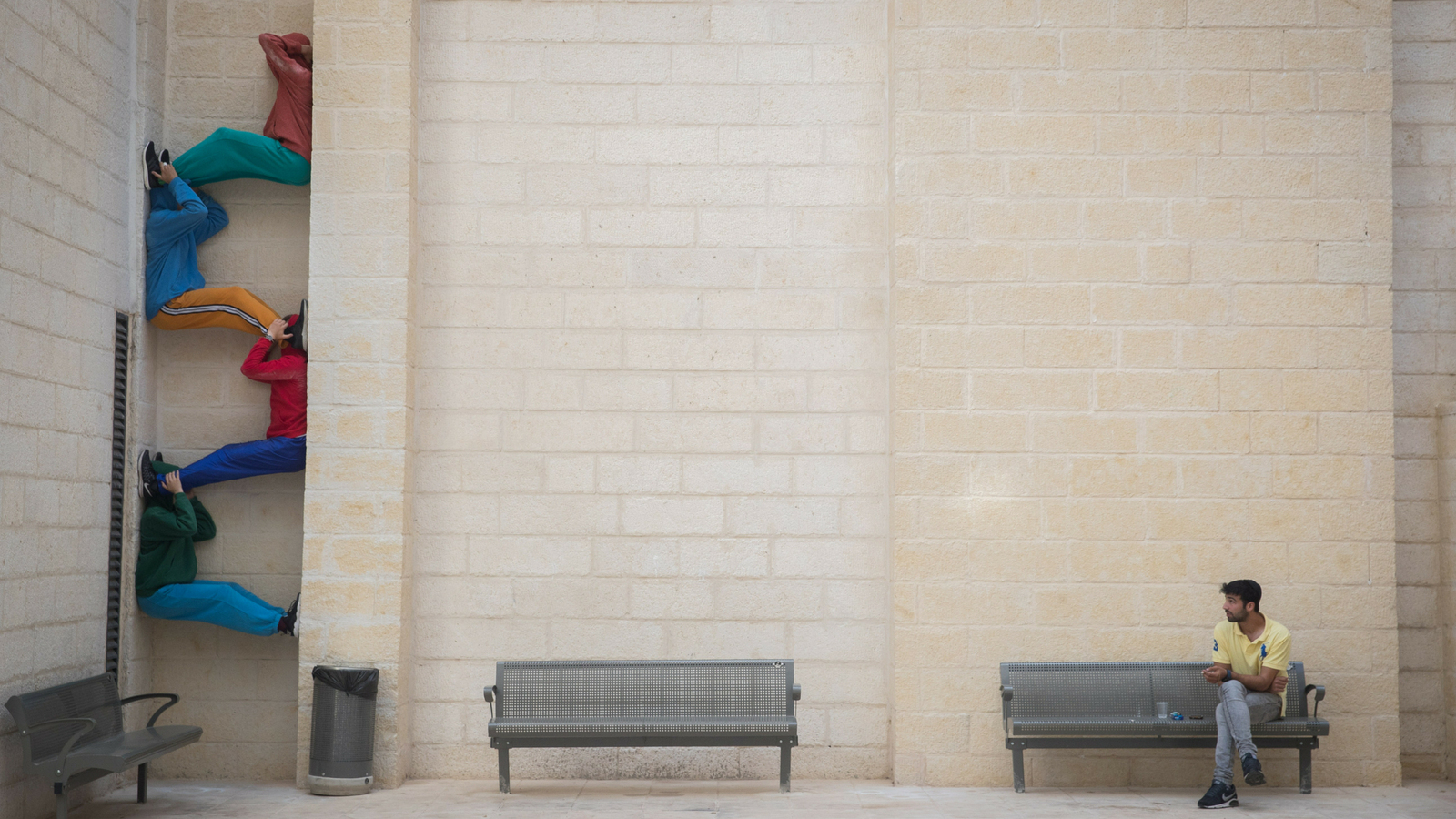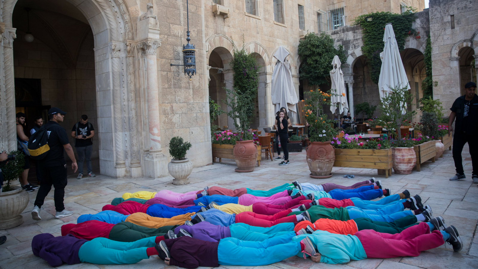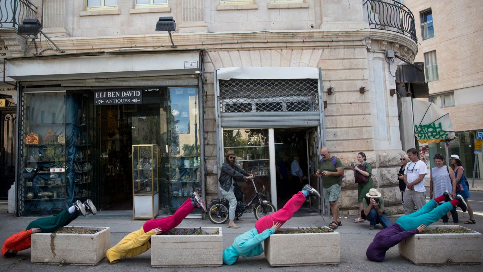 A group of 15 local dancers turned heads in Jerusalem as they made their way around the city, twisting their bodies into colorful human sculptures. The urban performance was part of this year’s Israel Festival, which features collaboration between international and Israeli artists.
