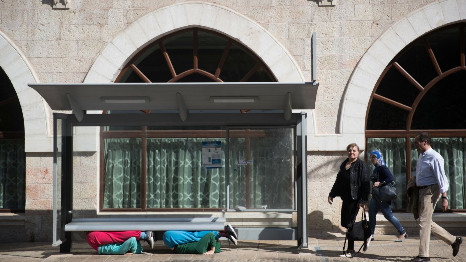 During the performance, titled “Bodies in Urban Space,” Austrian choreographer Willi Dorner and dancers from Tel Aviv’s Maslool Professional Dance Program led a group along a site-specific walk around Jerusalem, in which they created physical compositions against a backdrop of urban architecture.