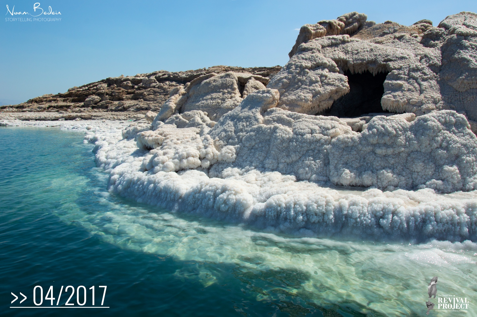 Bedein’s “Dead Sea Story” website includes his photographs of salt formations covered with water, then later peeking out to sparkle under the hot Israeli sun.