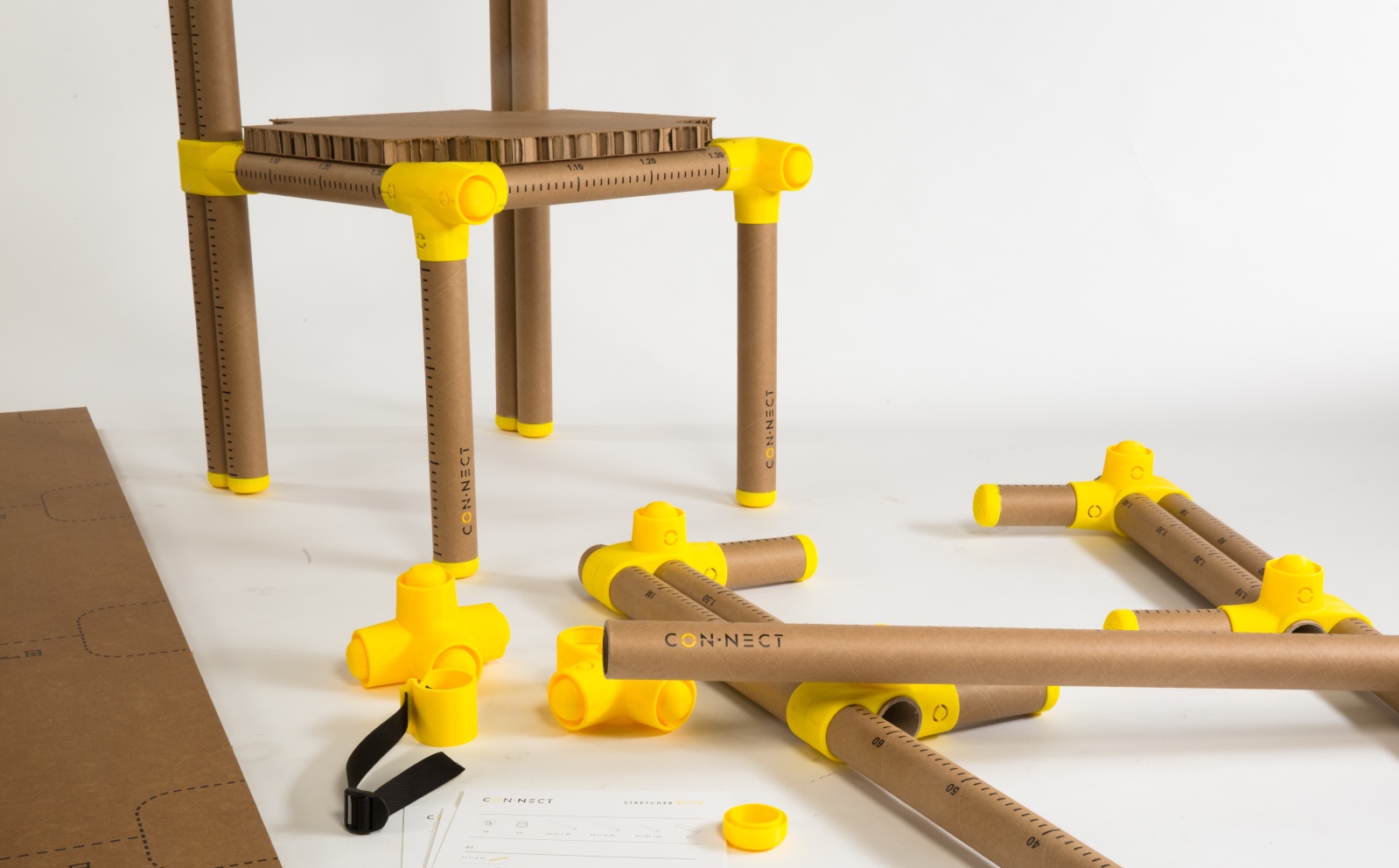 Amir Argov noted a significant increase in the number of natural disasters occurring in the world, and conceived of a kit that people in affected areas could use quickly to assemble emergency supplies and furniture, such as crutches and chairs, from lightweight corrugated cardboard and plastic joints.