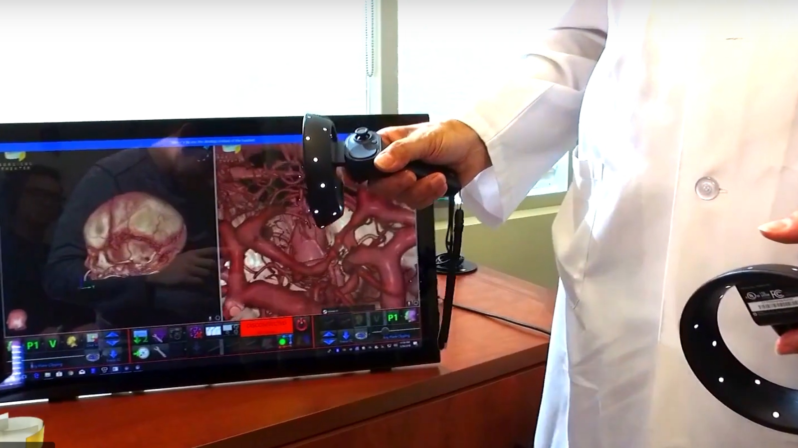 The first part is a Precision VR Viewer that turns conventional black-and-white 2D patient scans (such as CT and MRI images) into an interactive 3D model to help patients and their families better understand the condition and how it will be treated.
