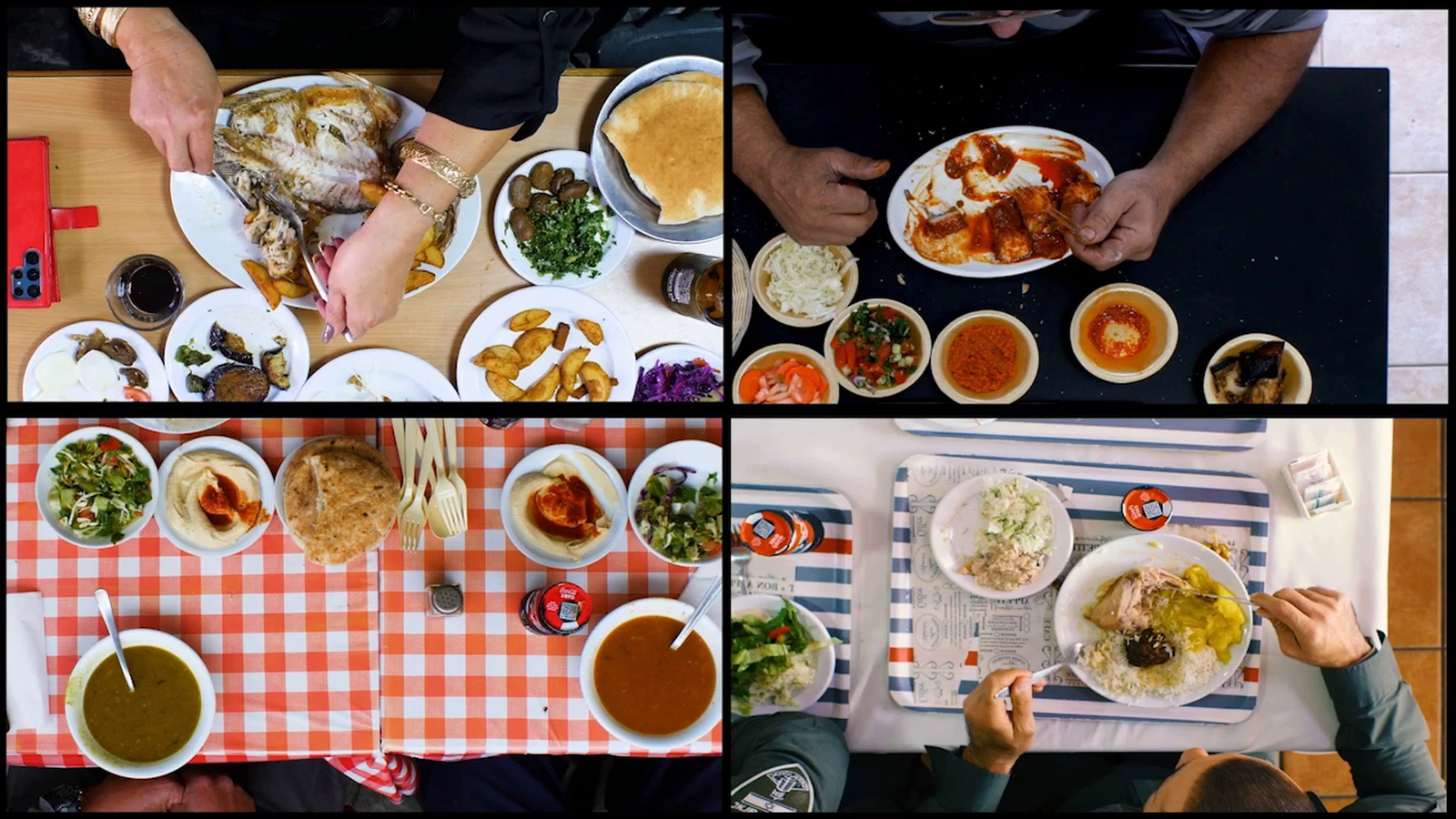 We see images of Thai laborers in the Arava and Turkish and Sudanese construction workers who spend their lunchbreak resting on a construction site or in the fields, eating food they have made themselves or bought from others in their community out of plastic containers.