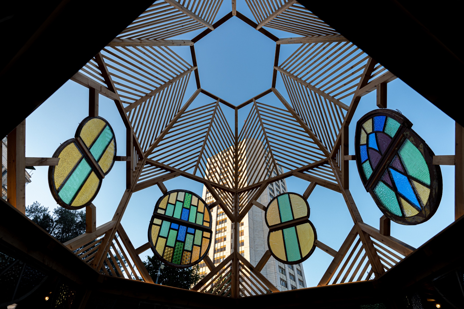 This palace of windows was created by Yoram Amir, Itamar “Faluja” Paloge and Lior “Lili” Peleg in conjunction with the upcoming annual Mekudeshet cultural festival in the capital city.