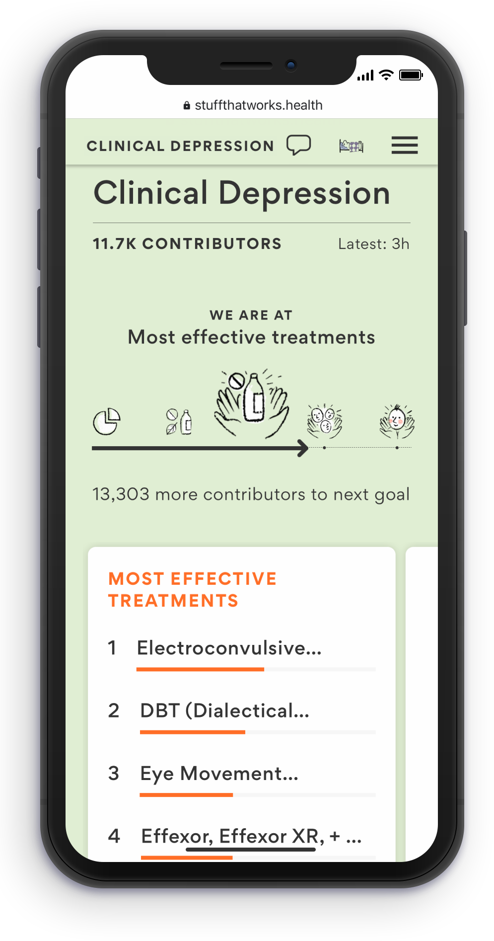 Want to know the most effective treatment for clinical depression? The most tried approach to easing fibromyalgia (the condition with the most community members on the site)? StuffThatWorks’ AI can tell you.