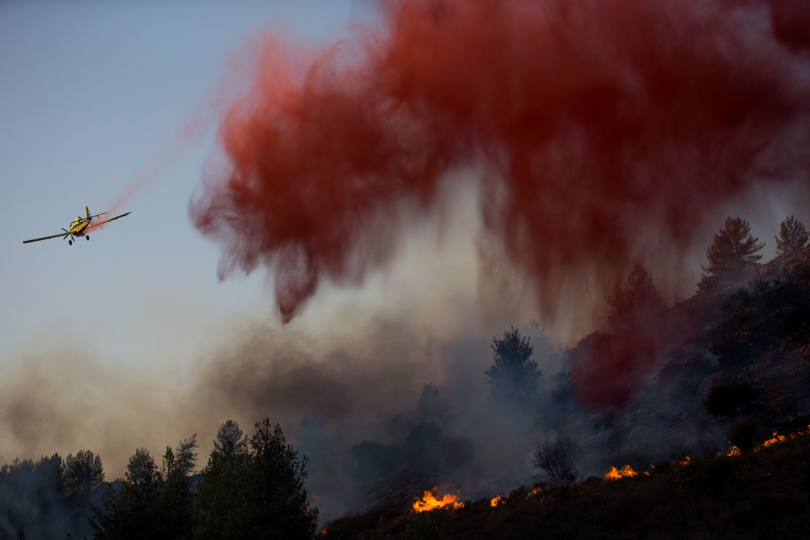 Israeli firefighter aircraft try to extinguish a forest fire which broke out in the forest near the Nataf nature reserve, outside of Jerusalem on November 23, 2016. Photo by Yonatan Sindel/Flash90