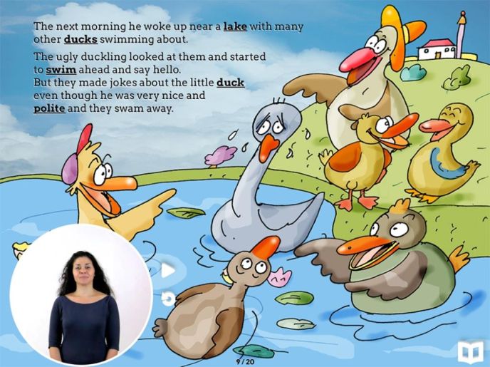 Each of the interactive fairy tales features pictures by world-class Israeli illustrators and is narrated in American Sign Language, in synch with the text, by deaf actress Alexandria Wailes.
