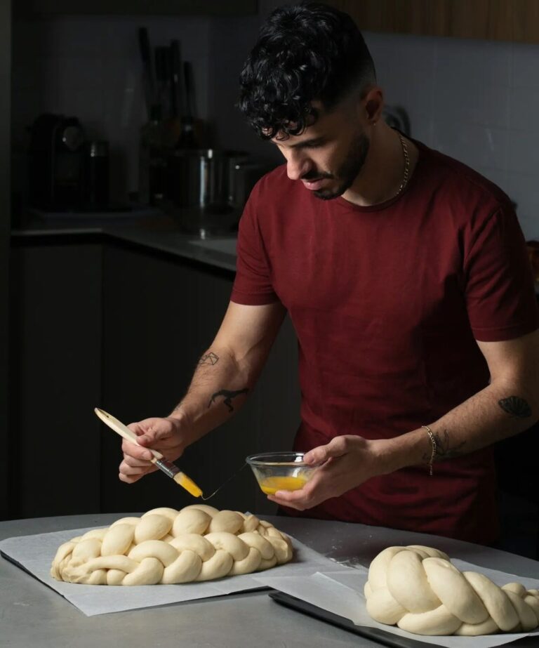 Chabasov tells us his back story. He has Turkish and Bukharan roots but there was no savta in the kitchen baking challah in the Tel Aviv home where he grew up, and neither was baking a hobby or interest, he admits.