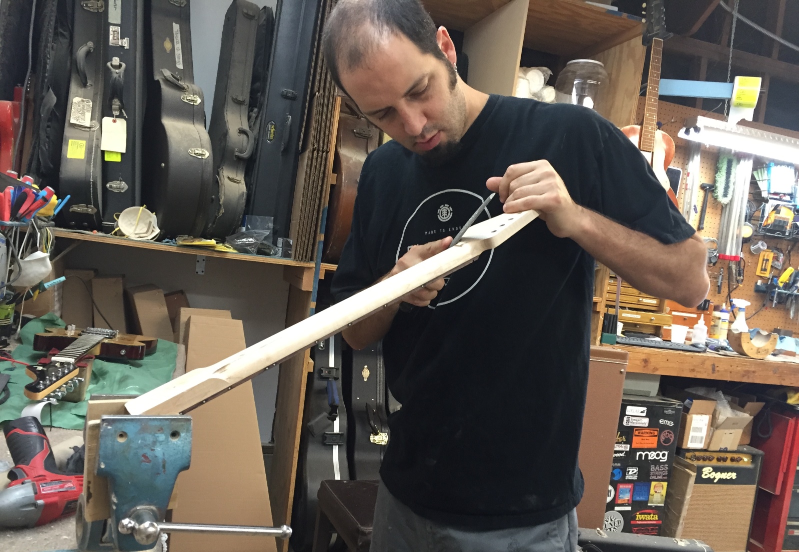 Born in 1978 and raised in Jerusalem, Shabat has made guitars for musicians including Chris Traynor of Bush and his old buddy from Israel, Sean Hurwitz of Smash Mouth. Shabat is the techie of choice for Nick Hexum of 311 and Australian artist Irwin Thomas (Jack Jones), among others.