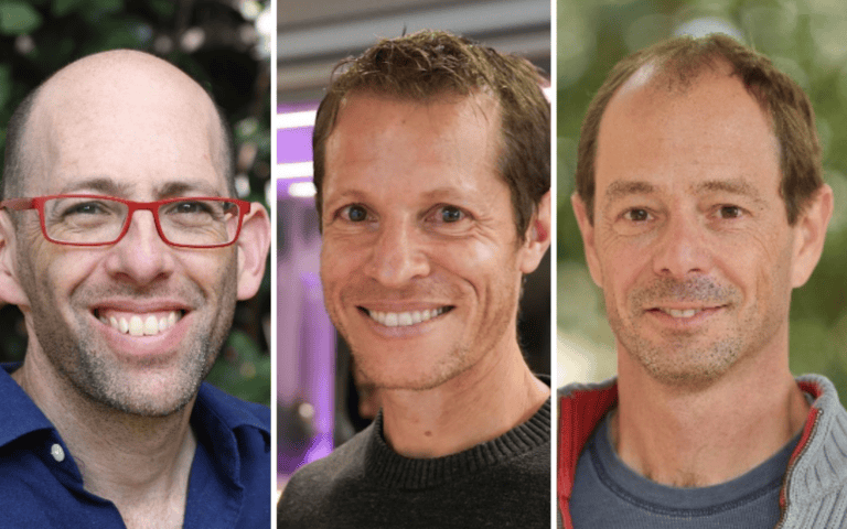 From left, Prof. Elad Gross, Prof. Dani Ben-Zvi, Prof. Prof. Ami Citri. Photos by Bruno Charbit, Alon Gross/Hebrew University