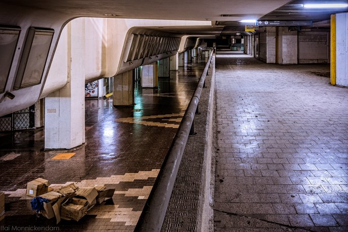 As we make our way toward a dimmer and more desolate part of the station, 52Frames cofounders Yosef Adest and Shai Davis pause to give some instruction and then encourage us to find a shot. Cameras in hand, we scatter to find something that speaks to us. I follow one of the more experienced members, Andre Guelmann, who joined more than a year ago.