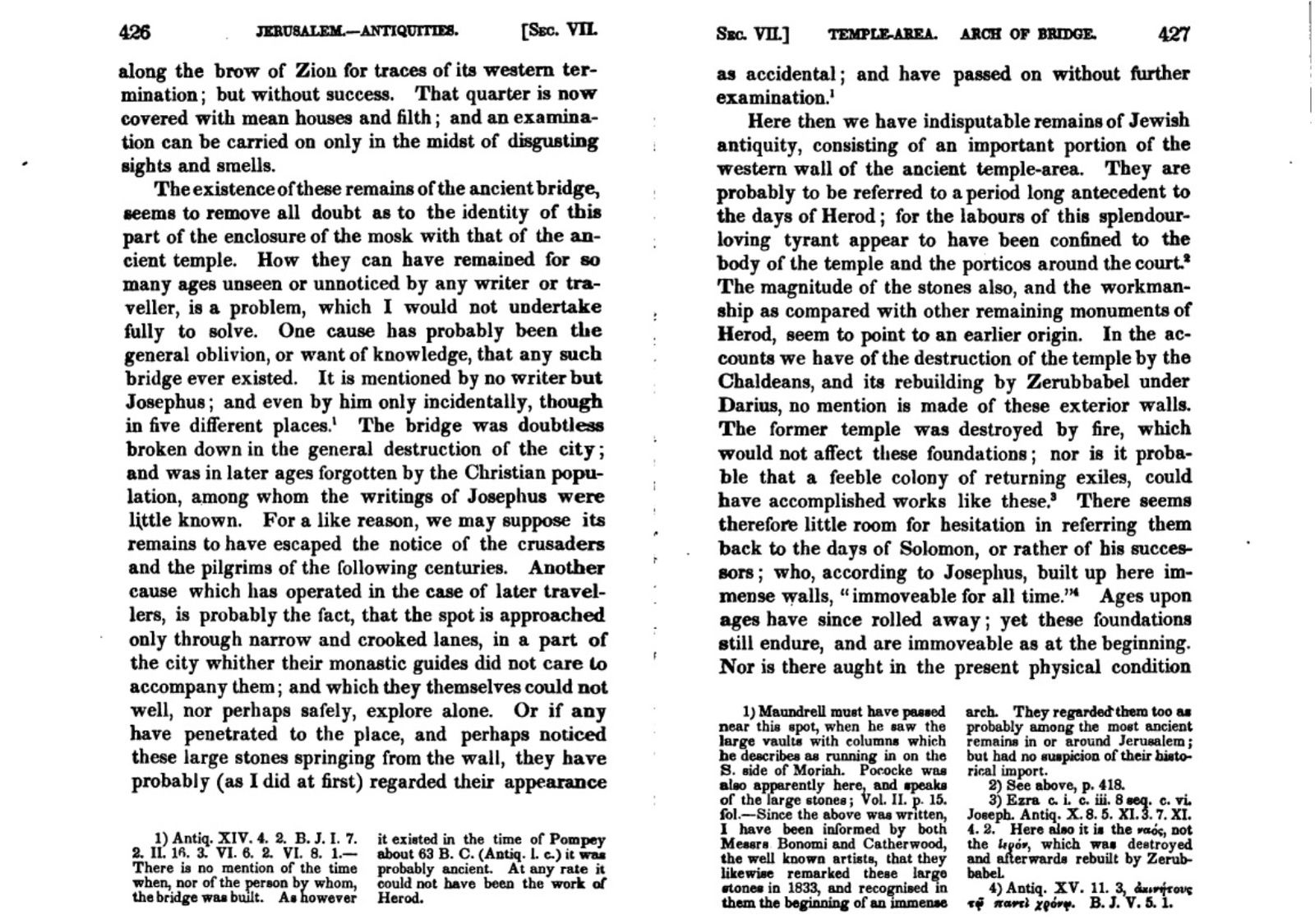 Most notable of all, perhaps, was American biblical scholar Edward Robinson, for whom is named the wide stone arch that once supported a monumental staircase at the southwestern corner of the Temple Mount in Jerusalem.