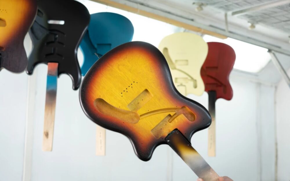 Overall, the Macmull team now builds around 130 guitars each year. They have five designs and within each of these create different color and electronic versions that get sent out to stores around the world or sold directly to private customers who order them online according to their specific color and hardware preferences.