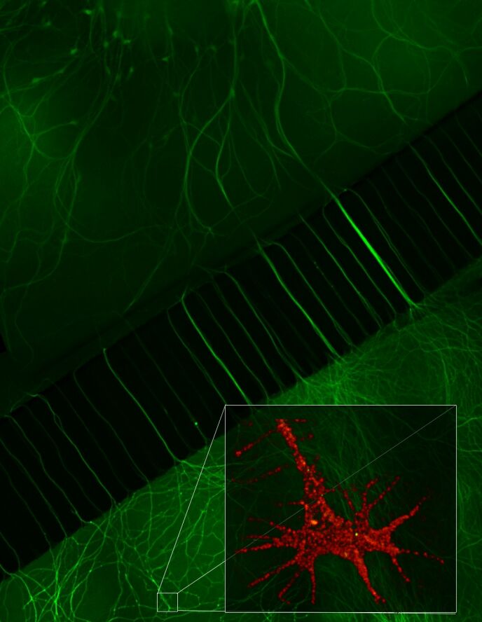 A team led by Eran Perlson of Tel Aviv University wanted to examine the details of how this transmission occurs. They set up a system to grow asymmetric nerve cells in an observation chamber, and used live cell imaging to track how rabies virus particles are transported along the axons.