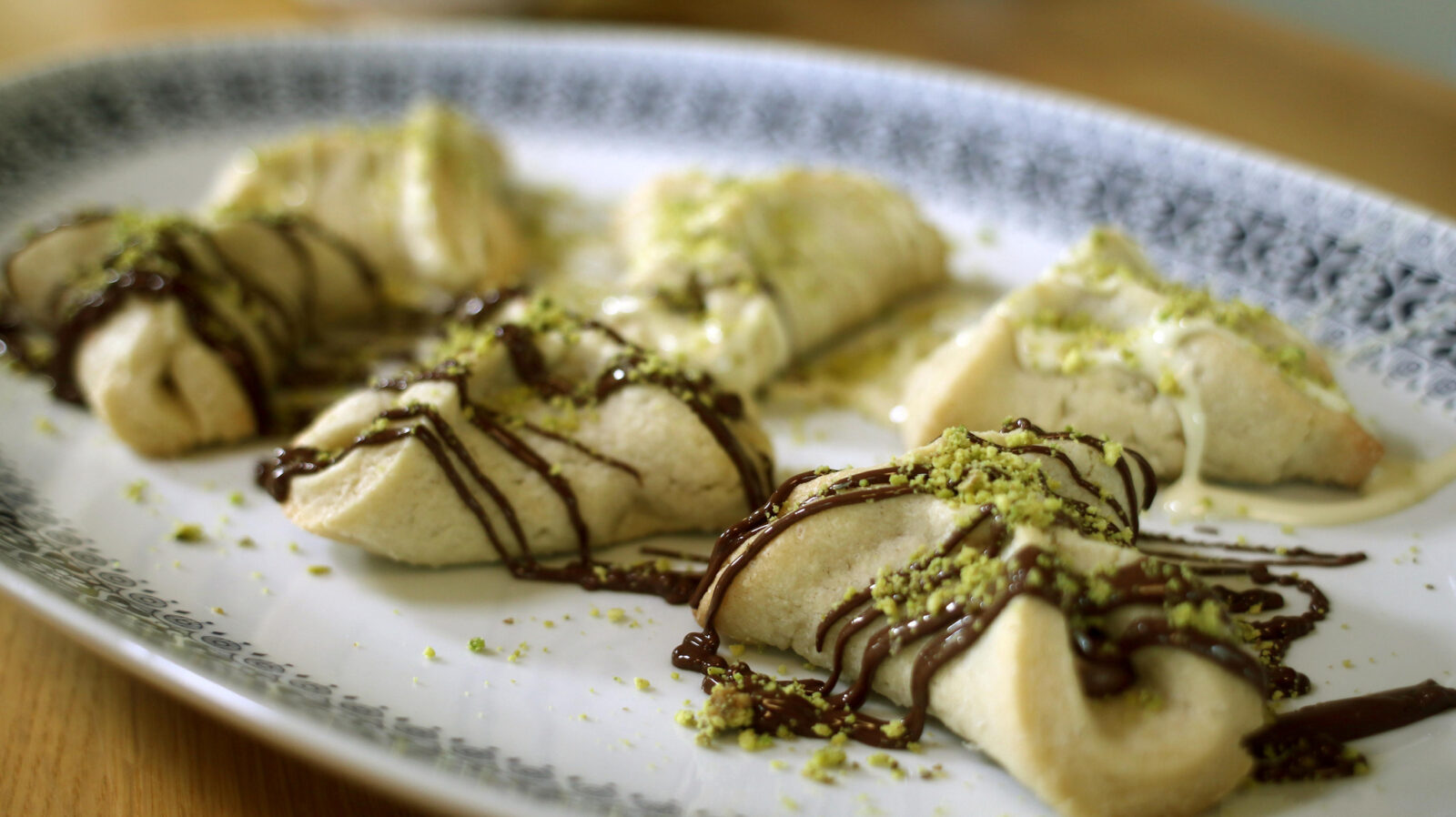 8. Let cool completely, and sprinkle with powdered sugar, or drizzle with chocolate and decorate with crushed pistachios