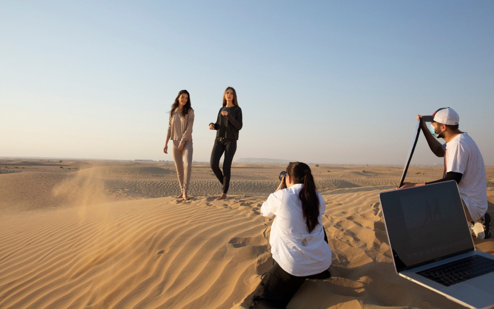 The models and crew began their workday in Dubai’s half desert road at 5am at a temperature of 104°F.