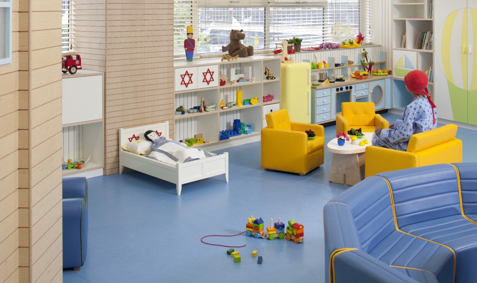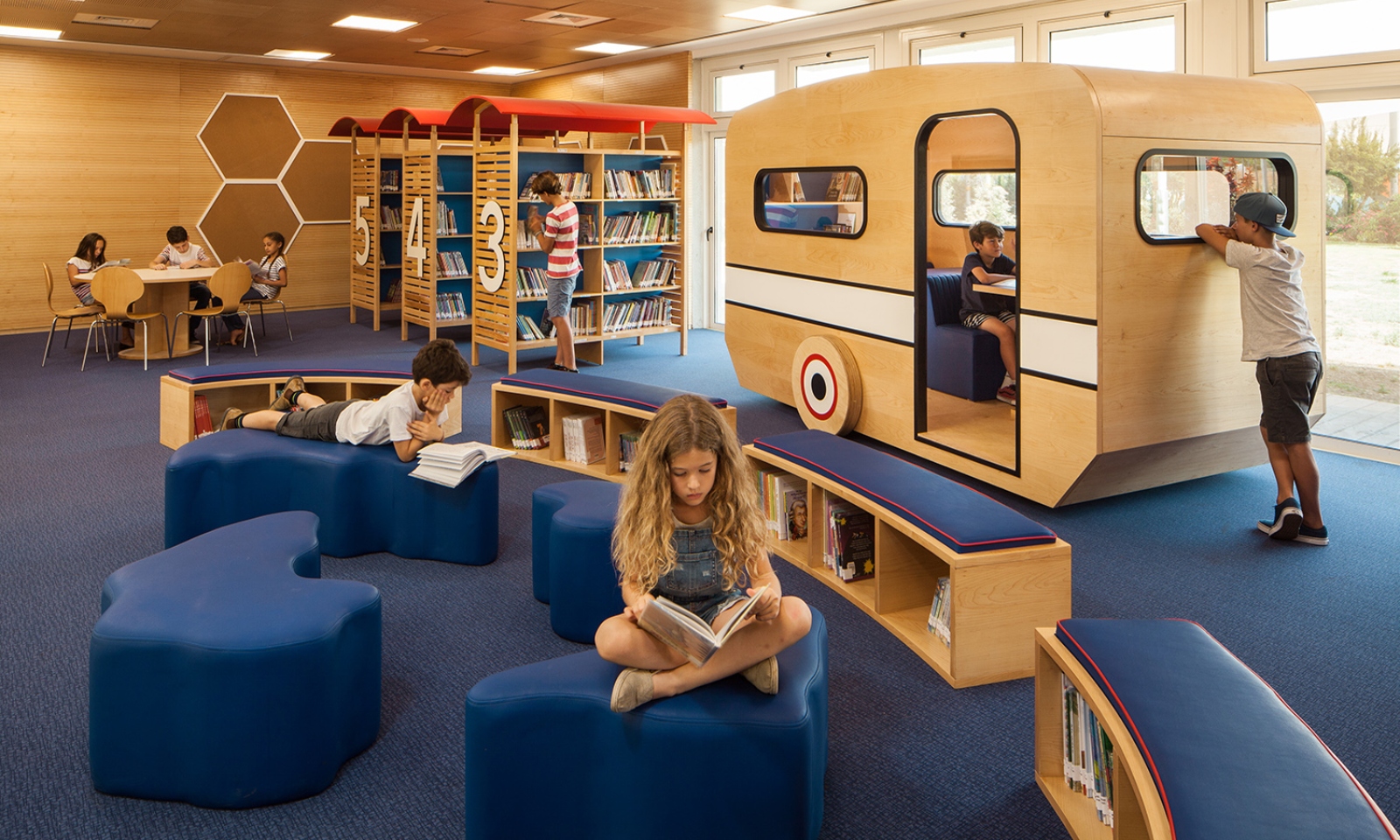 She and her staff played with geometric shapes that could be molded to support group activities for all children regardless of their physical or mental abilities. This flexible furniture, alongside intimate soft nooks, features calming colors and wooden materials to prevent sensory overload.