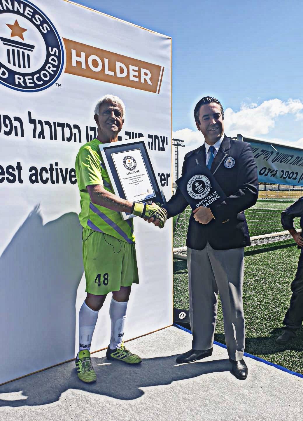 Isaak Hayik of Or Yehuda, Israel, has set a new world record as the oldest active player in a professional soccer match after tending the goal for Ironi Or Yehuda in an April 5 game against Maccabi Ramat Gan.