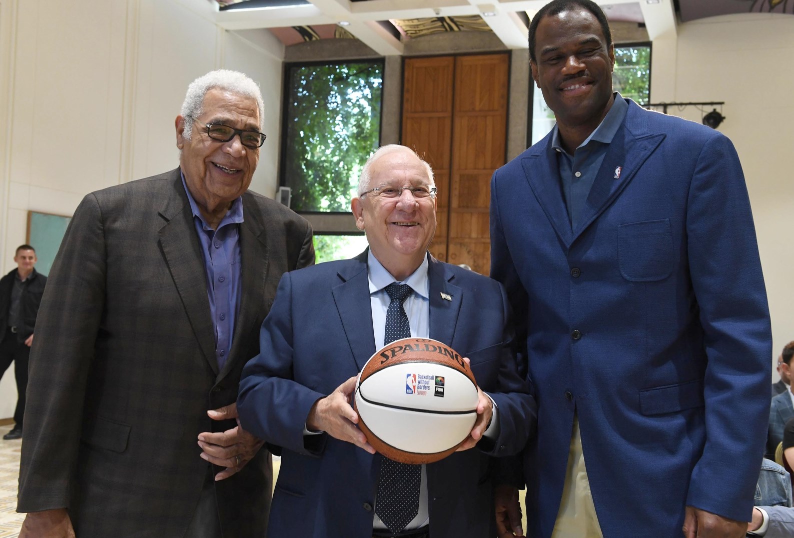 Israeli President Reuven Rivlin met at his residence on August 10 with NBA Deputy Commissioner and COO Mark Tatum, NBA club owners, chairmen, board members, and NBA Hall of Famers David Robinson and Wayne Embry.