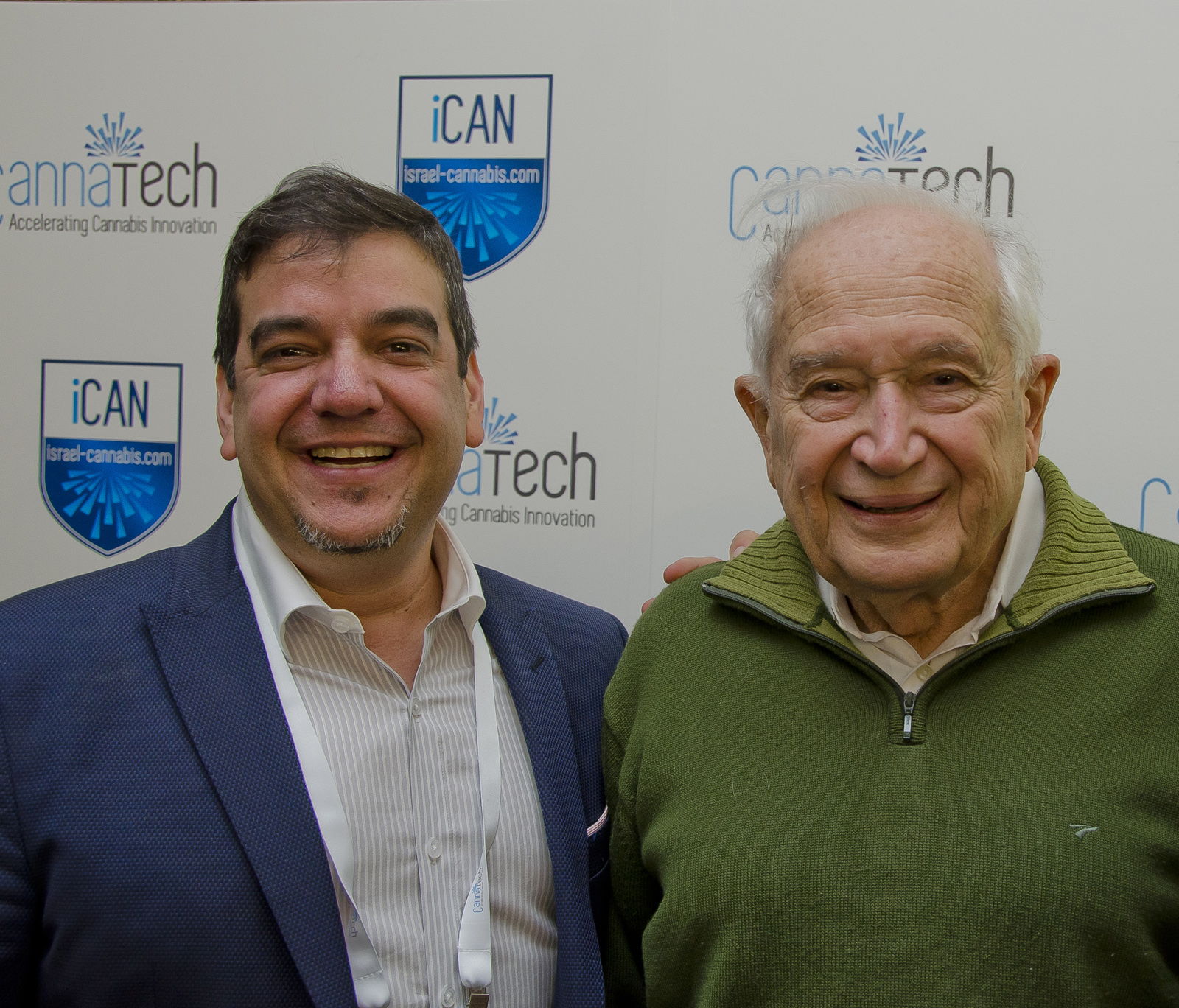 iCAN CEO Saul Kaye and Hebrew University Prof. Raphael Mechoulam at CannaTech 2016. Photo: courtesy