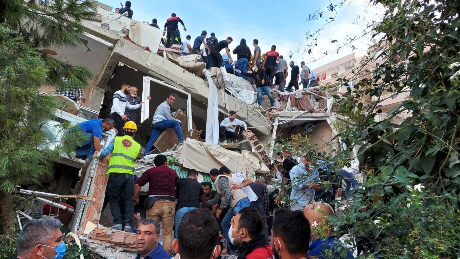 In Izmir, multiple buildings collapsed following the quake, killing 64 people and wounding some 900 others. In Samos, two teens were killed when a wall collapsed on them and some 20 others were injured.