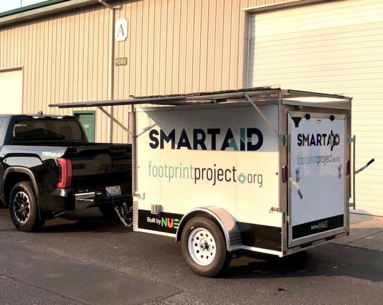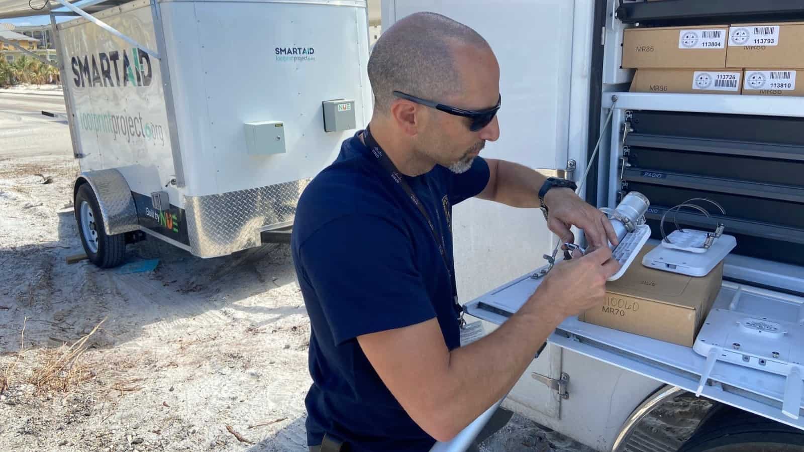 SmartAID volunteers towed one of the organization’s Smart Trailers from Fort Myers to Tampa, Florida, at the end of the week, and it has since been used as a mobile coordination hub providing power and telecommunications.