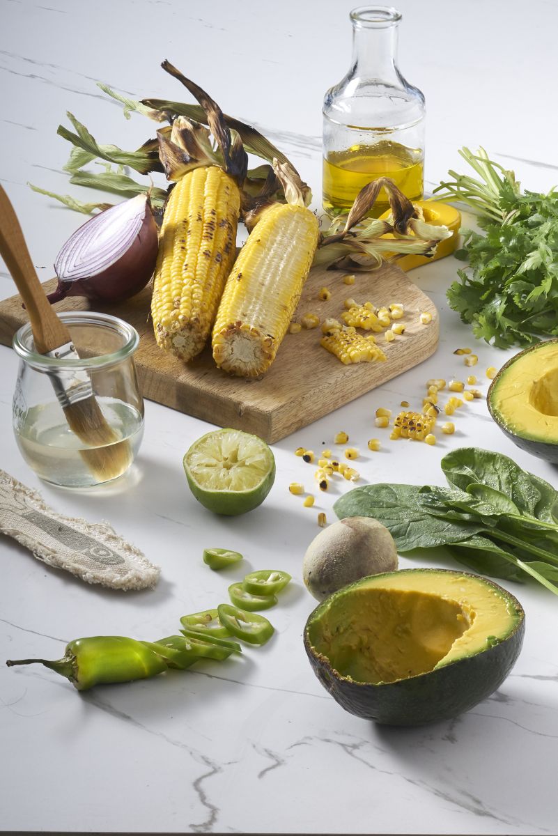 Brush corn with coconut oil, put on the grill, and remove kernels when cool. Alternatively, remove kernels first, heat oil in a skillet and cook about 4 minutes.