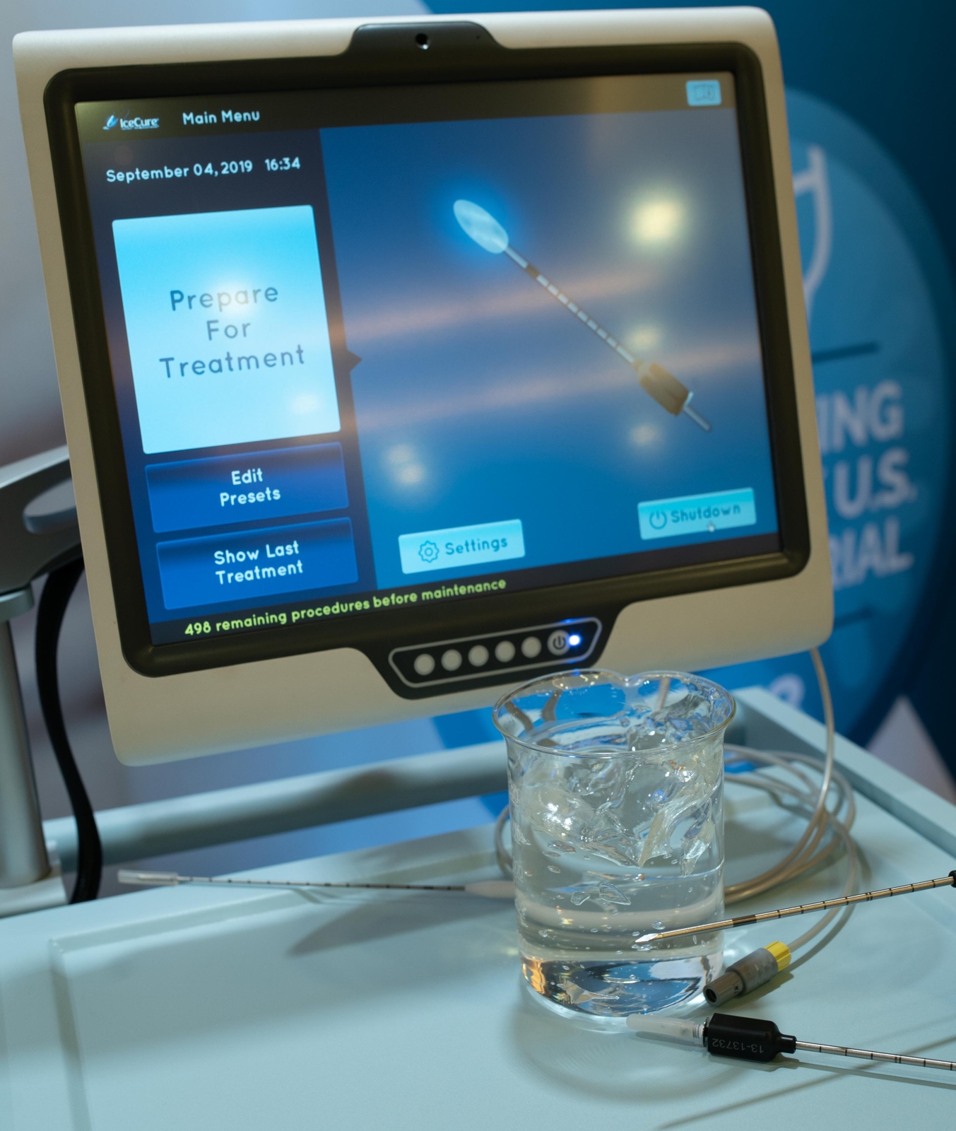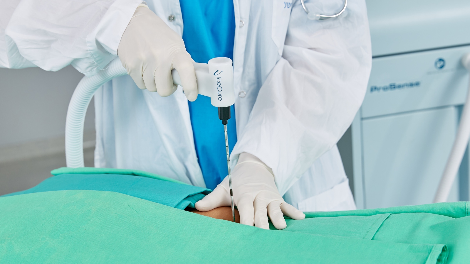 Once the needle is inside, the probe tip’s temperature is lowered with liquid nitrogen to minus 170 Celsius in less than a minute. Within an hour, the extreme cold destroys the target tissue, which dissolves out of the body naturally in a few weeks.