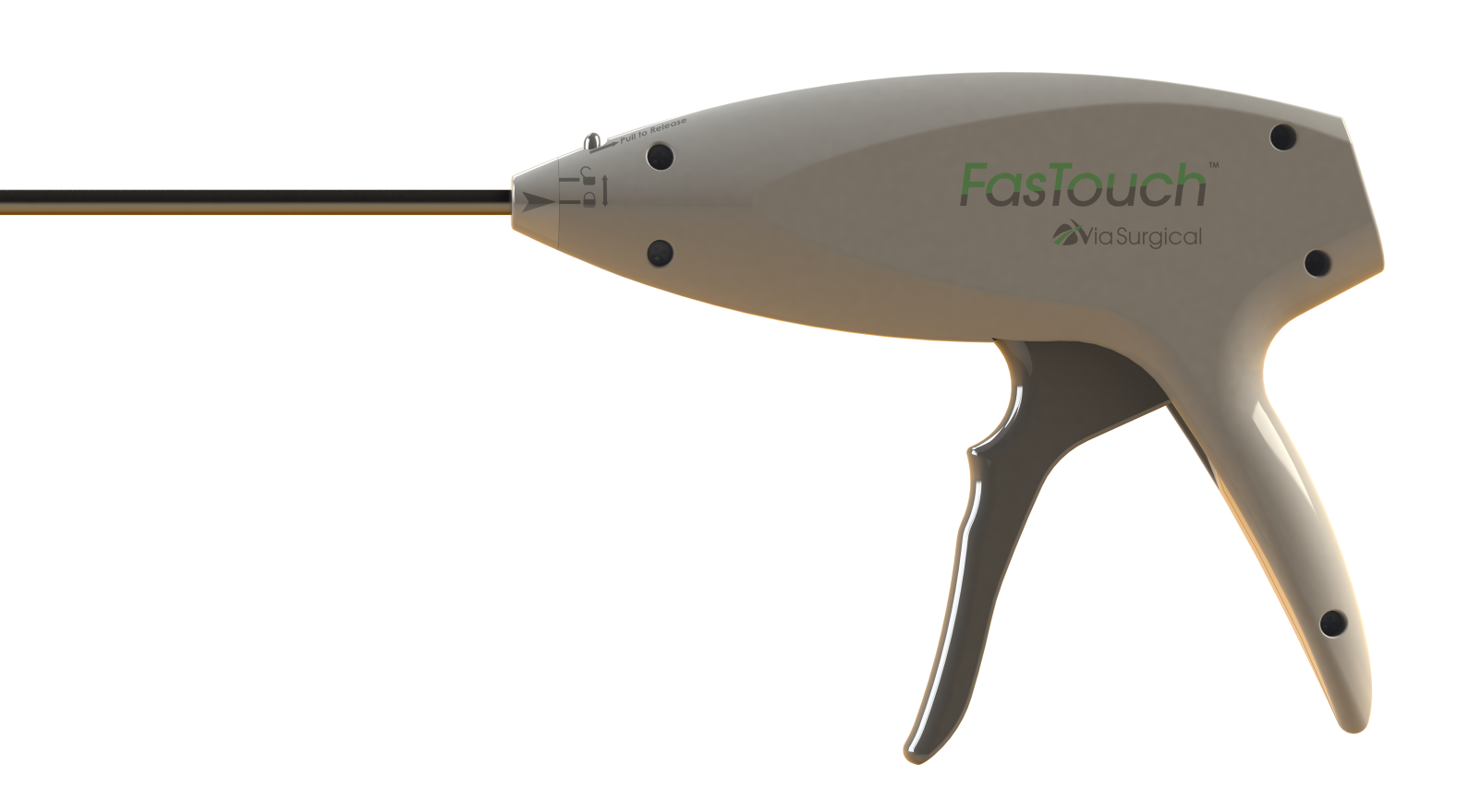 Via Surgical’s unique FasTouch cartridge system affixes prosthetic material to soft tissue. It is designed like sutures and delivered like tacks, with the goal of providing the best of both worlds for laparoscopic hernia repair.